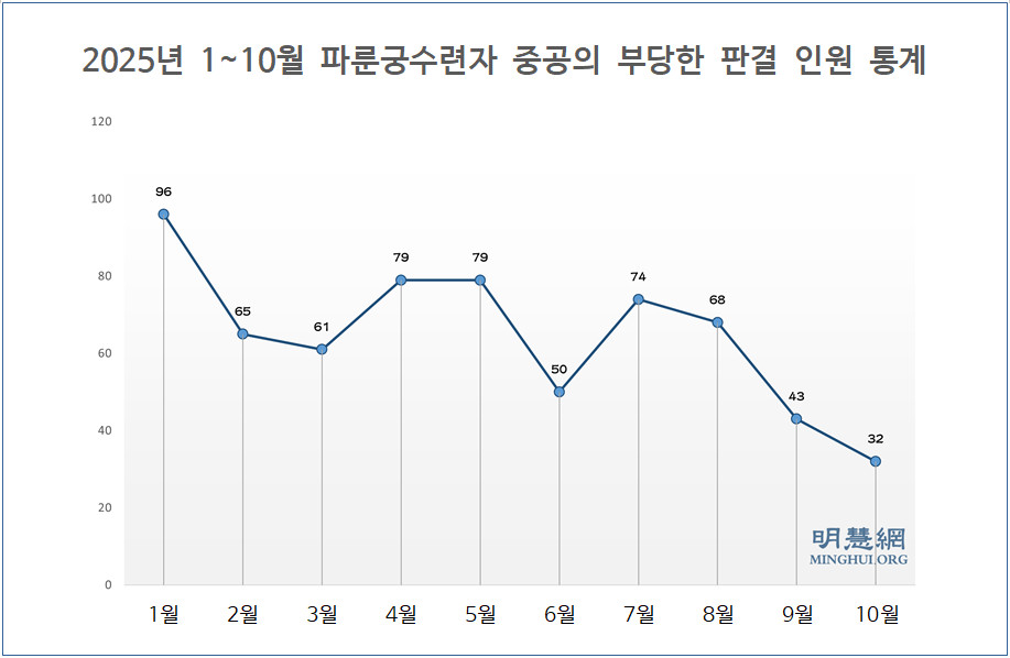 2025년 1~10월 파룬궁수련자 중공의 부당한 판결 인원 통계