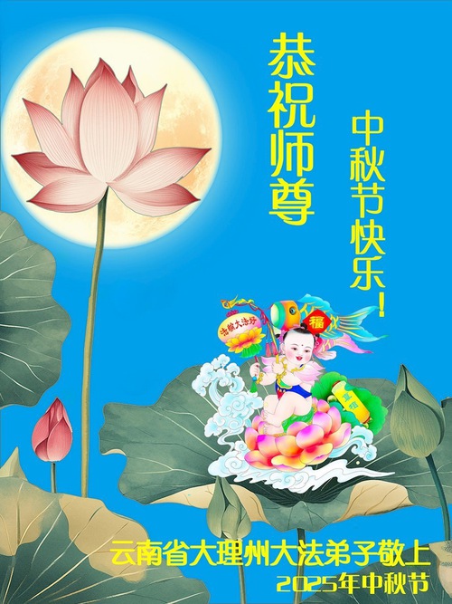 윈난성 파룬따파 수련생들이 중추절을 맞아 존경하는 사부님께 인사를 올립니다!