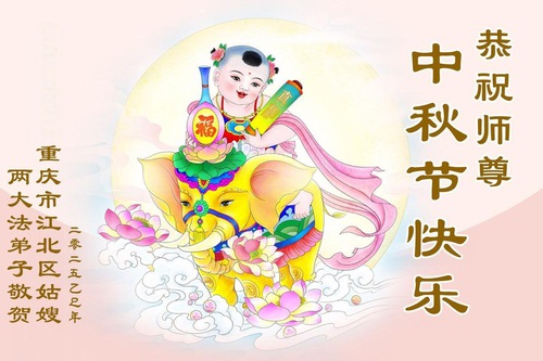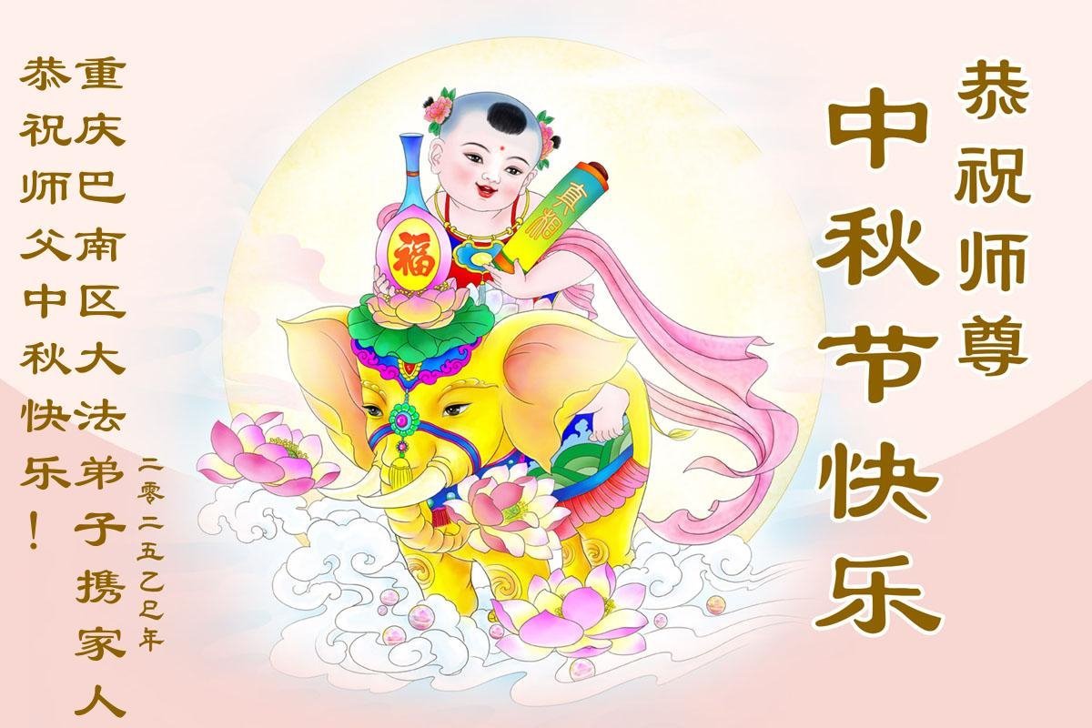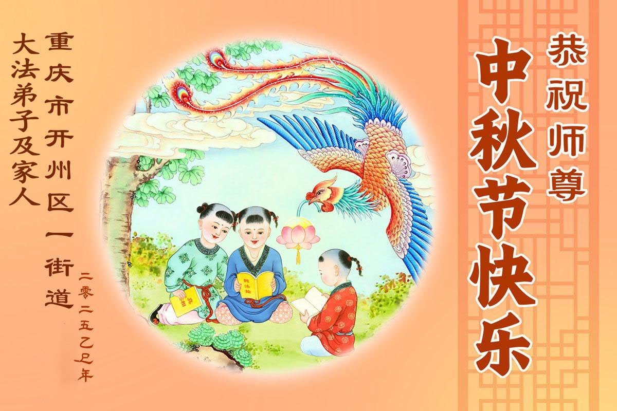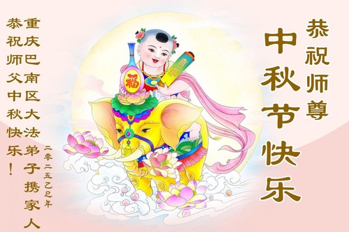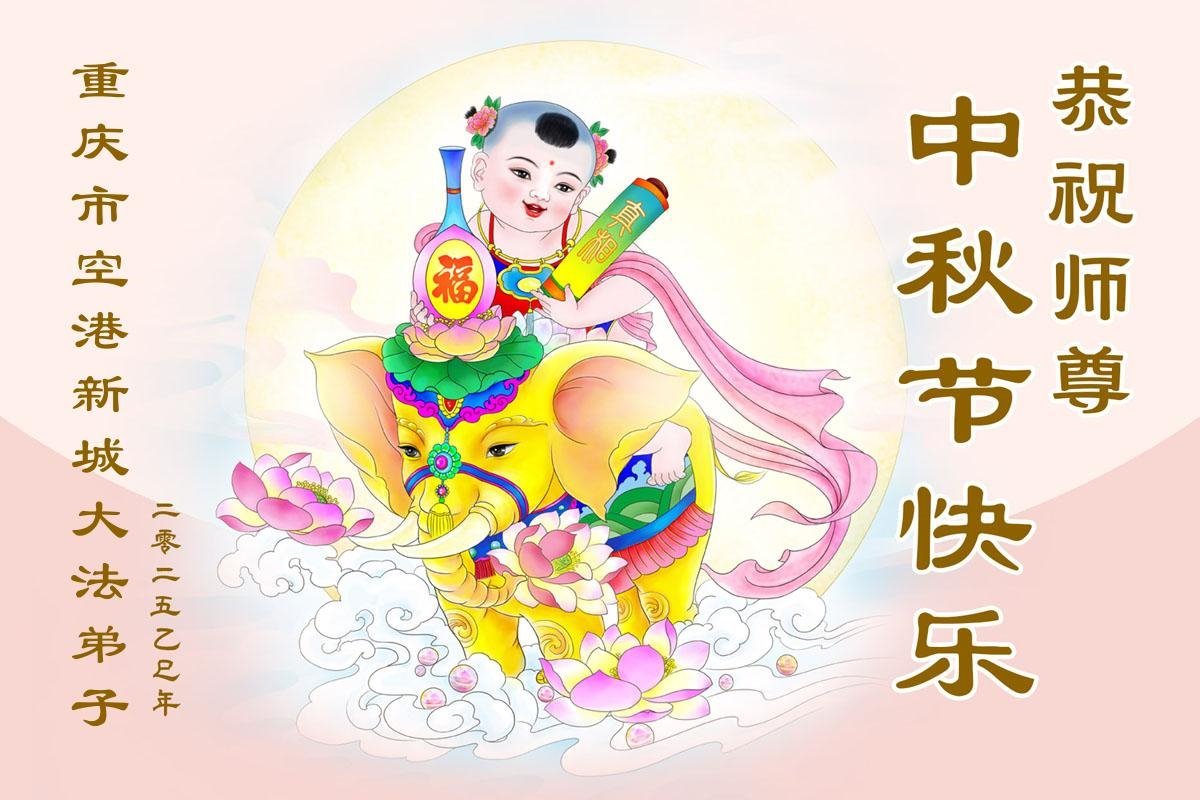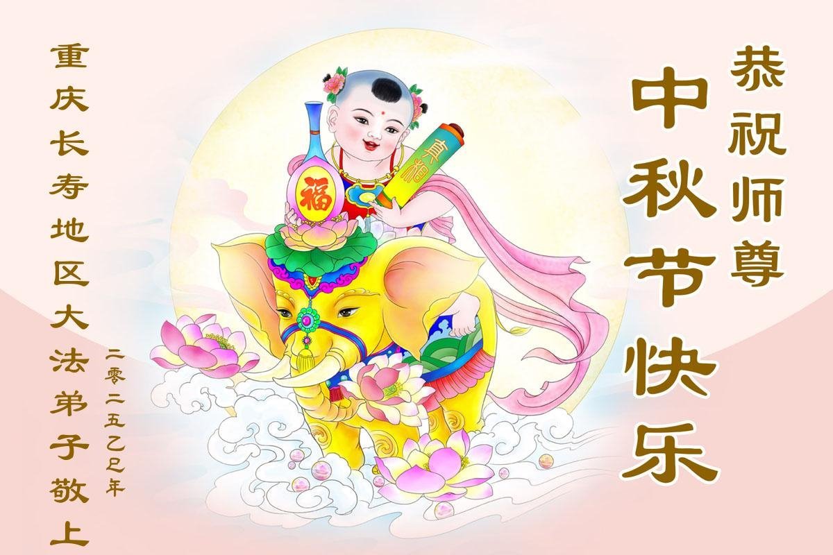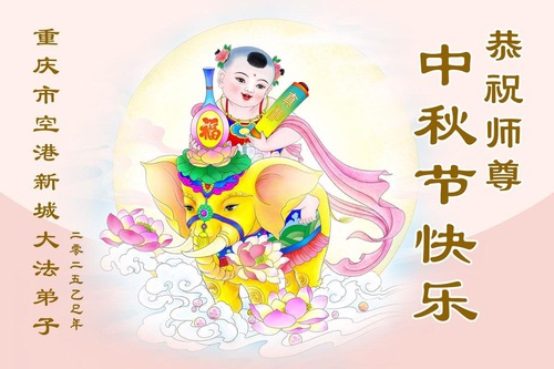 충칭 파룬따파 수련생들이 중추절을 맞아 존경하는 사부님께 인사를 올립니다!