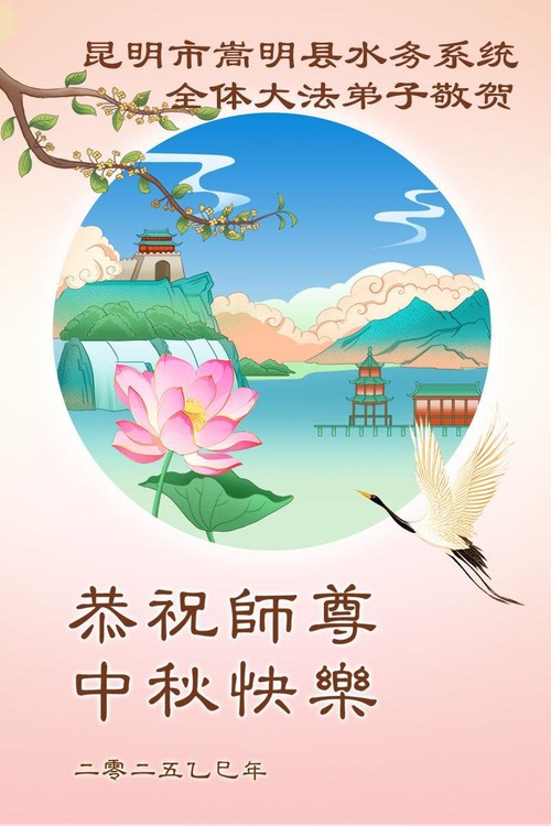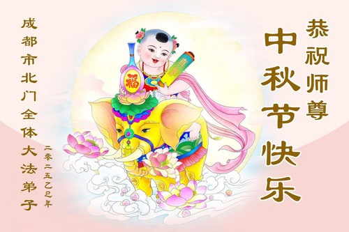 쓰촨성 파룬따파 수련생들이 중추절을 맞아 존경하는 사부님께 인사를 올립니다!