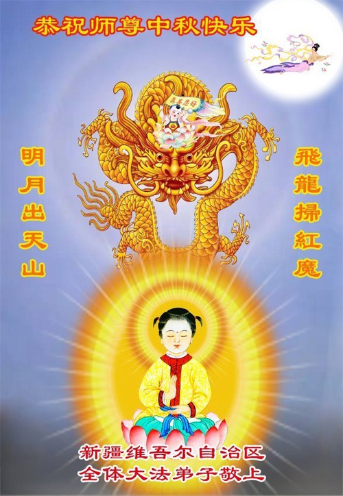 신장 자치구 파룬따파 수련생들이 중추절을 맞아 존경하는 사부님께 인사를 올립니다!