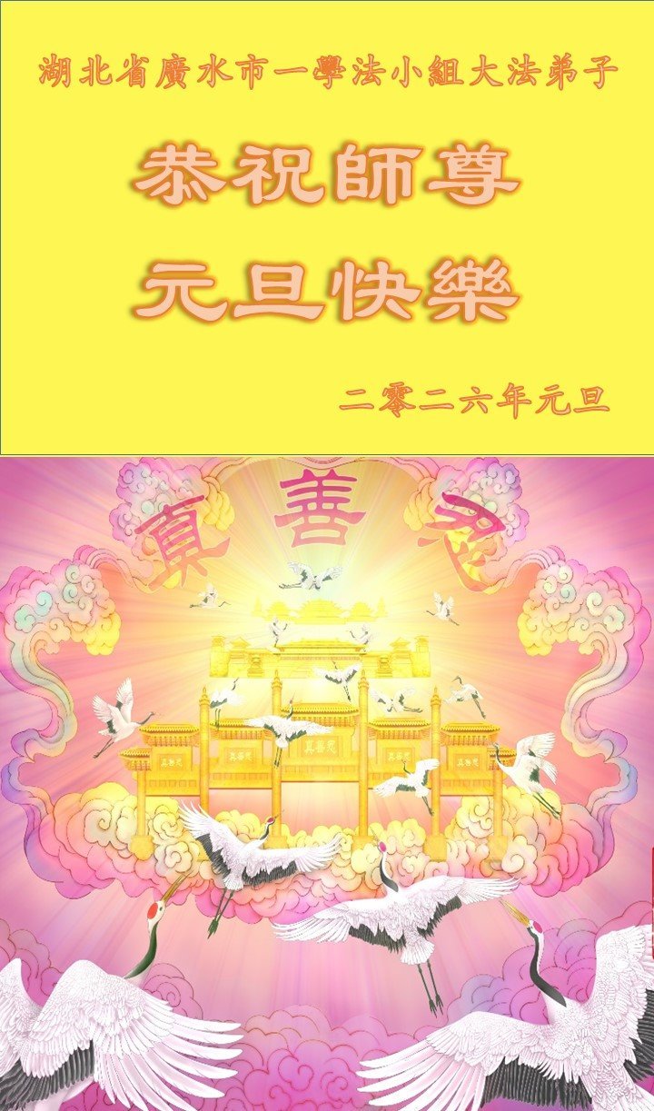 [명혜망] 중국 허베이성 황시, 징먼, 톈먼, 셴타오, 황강, 샹양, 징저우, 츠비, 시수, 광수이, 마청, 쑤이저우, 중샹, 시옌, 이창, 샤오간, 졘리, 구청, 어저우, 샹판, 안루, 징산 파룬따파 수련생들이 새해 인사를 보내왔습니다.