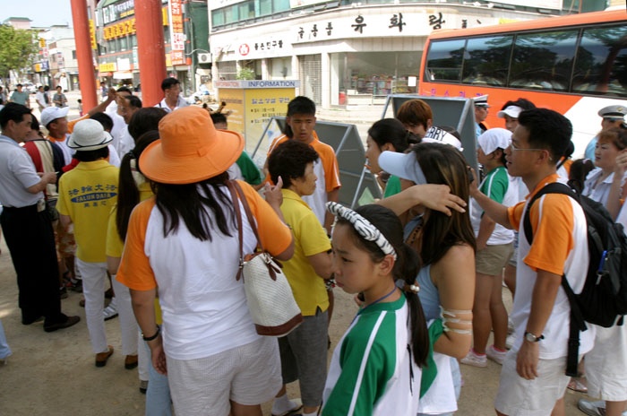 동수중에는 일본어가 유창한 분이 계시기에 진상의 정확한 정보를 들려주기에 부족함이 없었다. 많은 일본인 학생들이 파룬궁에 관심을 표했고 전단지를