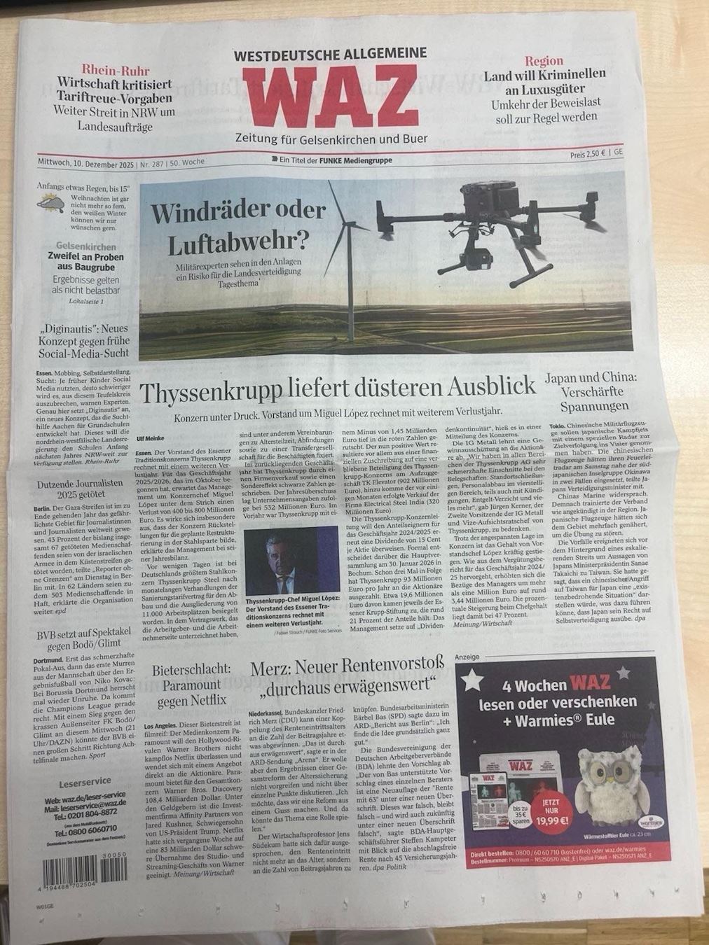 [명혜망](베를린 지국) 2025년 12월 10일 세계 인권의 날을 맞아, 독일 베스트도이체 알게마이네 차이퉁(WAZ)은 겔젠키르헨(Gelsenkirchen) 지역판에 ‘우리는 생체 장기적출을 못 본 체하고 있다’라는 제목의 인터뷰 기사를 게재했다. 신문은 독일 사회가 경제적 이익을 위해 영혼을 팔아서는 안 되며, 중국공산당(중공)의 생체 장기적출을 못 본 체해서는 안 된다고 호소했다.