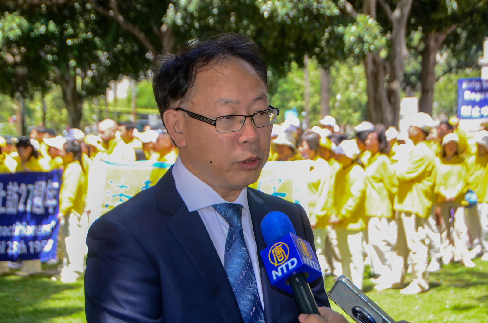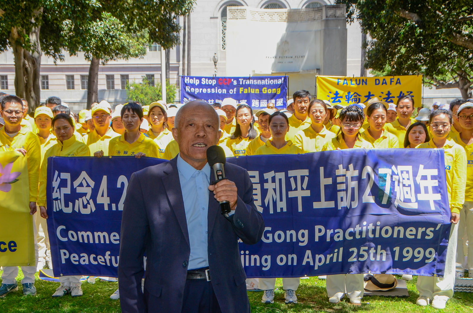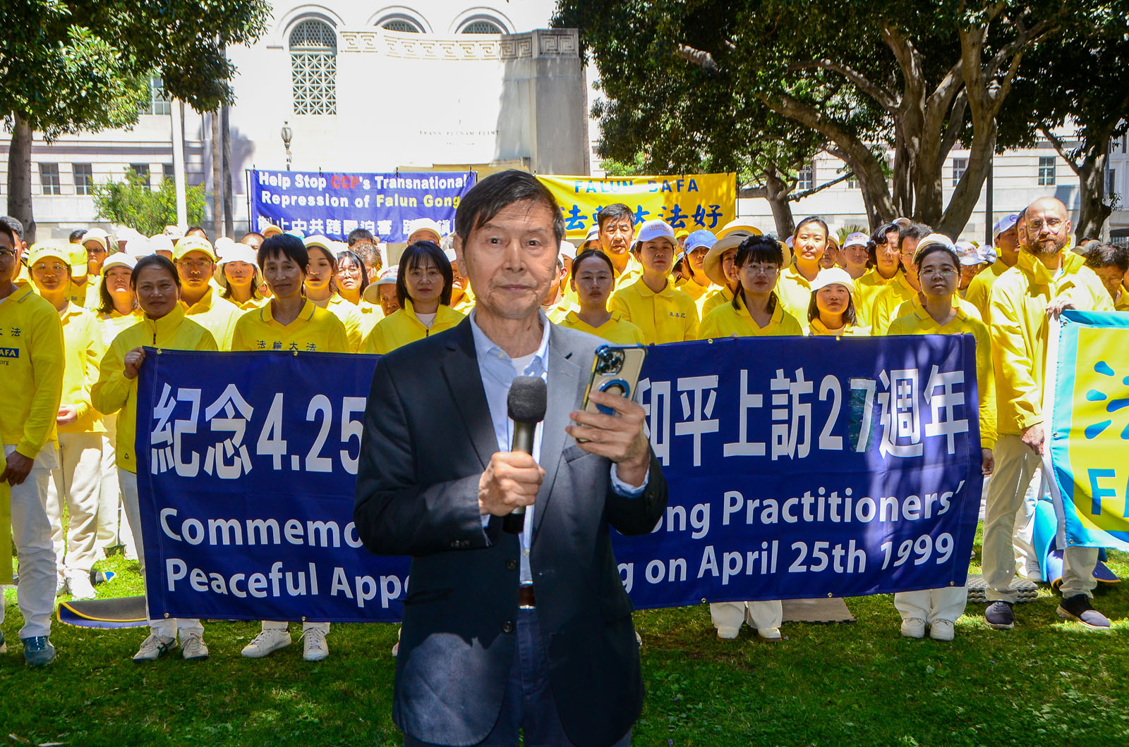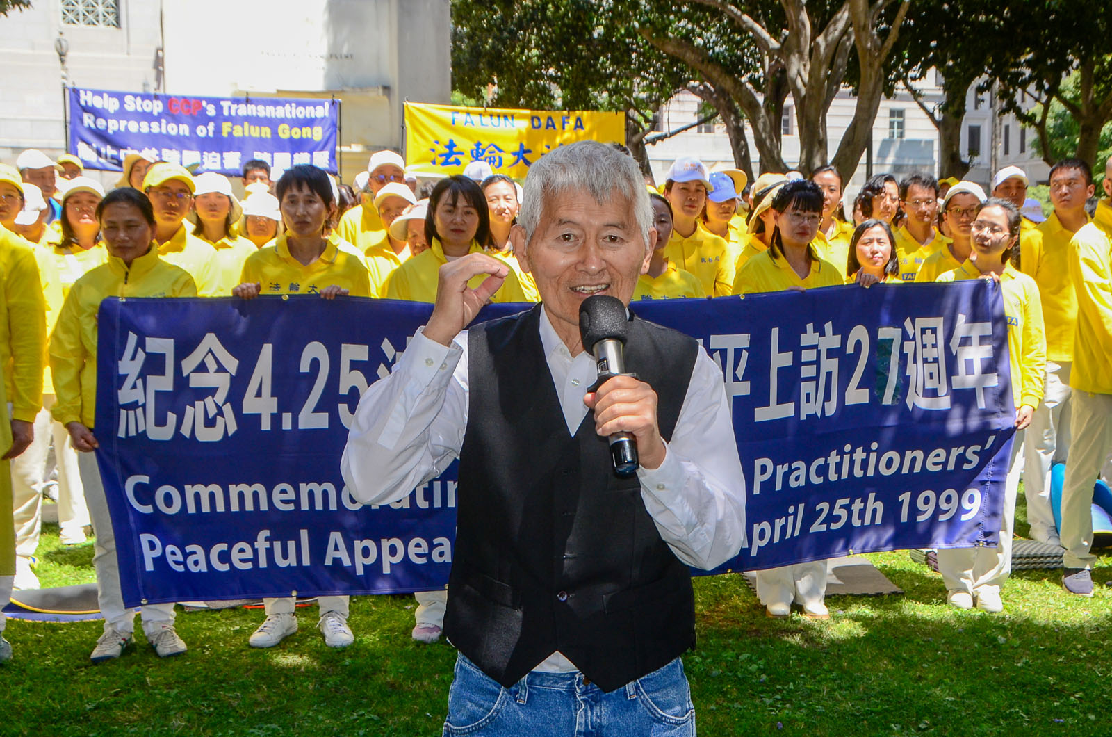 “선량한 사람을 박해하기 위해 중공은 ‘중난하이(中南海, 베이징 공산당 집무실)를 포위 공격했다’는 거짓말을 조작했습니다. 하지만 진상은 과연 무엇일까요?” LA 파룬궁 대변인 우잉녠(吳英年) 교수는 발언에서 당시 청원의 직접적인 원인은 중공에 톈진에서 무리하게 납치한 40여 명의 파룬궁수련자를 석방하라고 요구하기 위함이라고 말했다.