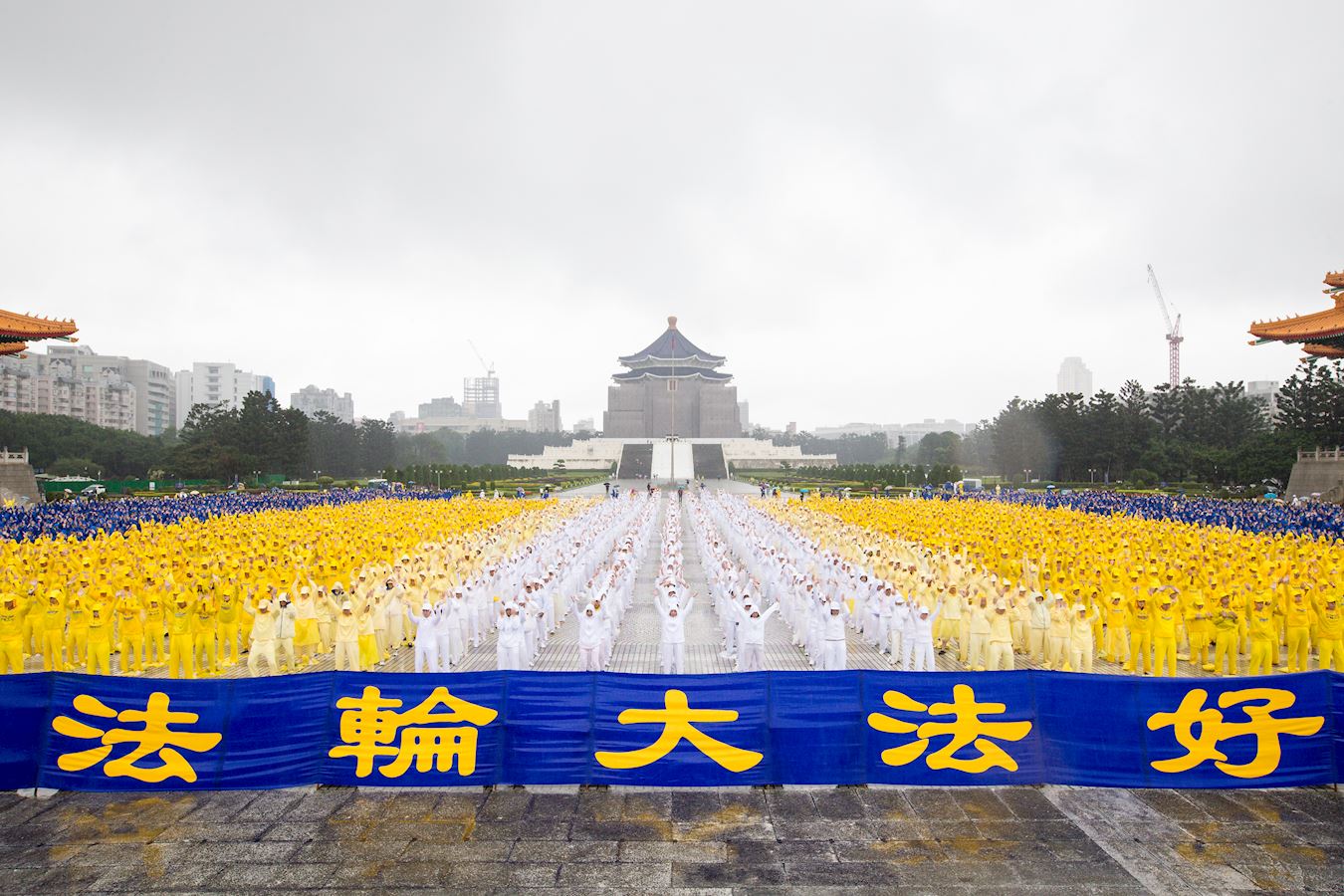 [밍후이왕](대만 밍후이 기자센터 타이베이 취재보도) 2017년 11월 26일 개최된 ‘2017년 대만파룬따파(法輪大法)심득교류회’ 전날인 11월25일 세계 각지에서 온 약 6천4백명의 파룬궁(法輪功)수련생들이 타이베이 자유광장에서 단체연공과 인각행사를 가졌다. 비록 행사당일 낮은 기온에 비까지 내렸지만, 평화로운 분위기 속에서 펼쳐진 장엄한 인각장면은 현지 대만인과 외국인관광객들에게 큰 감동을 안겨주었다. 그들은 이 경이로운 장면을 놓치지 않으려고 일제히 사진촬영에 바빴다.