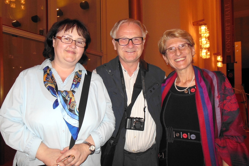 位于美国首都华盛顿的国际货币基金组织(IMF)的资深经济学家卡罗洛娃(Viera Karolova)女士(左)与大学副教授布雷斯坦斯基(Jozef Brestensky)先生(中)及其夫人斯洛伐克学术理事会国际合作主任、国家教育部委员、大学副教授布雷斯坦斯基(Beata Brestenska)女士(右)观看了四月二十二日神韵世界艺术团在美国华盛顿肯尼迪艺术中心的第五场演出。